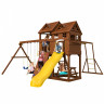 Детский городок изготовлен из северной древесины хвойных пород, обработанной безопасной декоративно-защитной пропиткой. Технология значительно увеличивает срок службы конструкций, повышает прочность древесины, защищает её от гниения и грибков. Обработка придаёт дереву приятный оттенок, проявляет и подчёркивает его текстуру. Используемая пропитка не содержит токсичных компонентов, экологична и абсолютно безопасна для ребёнка. Состав прошёл санитарно-эпидемиологическую экспертизу в Центре гигиены и эпидемиологии в г. Орехово-Зуево.